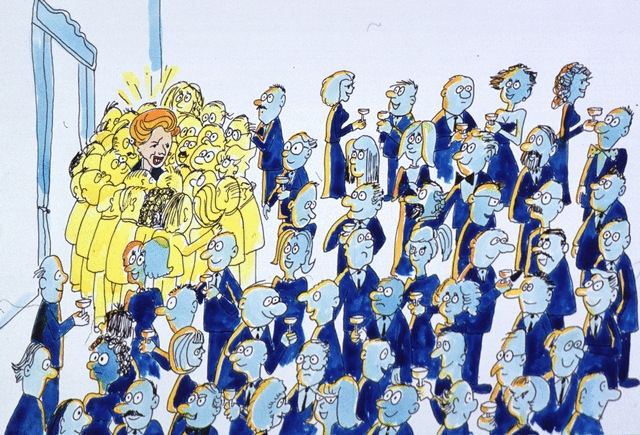 Orang-orang yang berada di sekitar ibu mantan Perdana Menteri kemudian berkumpul di sekitar beliau untuk bercakap-cakap atau hanya sekadar bersalaman, namun orang-orang yang berada jauh dari lokasi beliau tidak terpengaruh karena belum menyadari keberadaan si ibu. Karena banyak orang berkumpul di sekitar si ibu mantan Perdana Menteri, si ibu jadi sulit bergerak dan kehilangan momentum. Beliau akan bergerak perlahan menyeberangi ruangan namun orang-orang yang beliau dekati kemudian menyadari keberadaan beliau dan akan berkumpul di sekitar beliau, sementara orang-orang yang dijauhi kemudian kembali ke posisi semula.