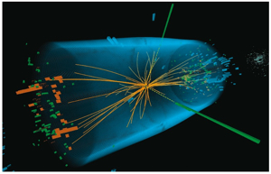 Sebuah peristiwa tumbukan yang direkam oleh detektor CMS (Compact Muon Solenoid)