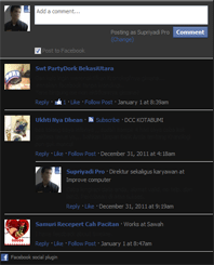 Dari sekian banyak yang saya coba, saya menemukan di blog bloggerbiasa yang sempurna saya pasang di blog saya ini, walaupun saya harus sedikit pusing kode menambahkan kode penutupnya. Artikel lain yang pernah saya coba punya rekan kumpulan cara, bisa tetapi semua posting terdapat komentar yang sama, lagipula kita tidak mendapatkan pemberitahuan pada account facebook kita bahwa artikel kita dikomentari.